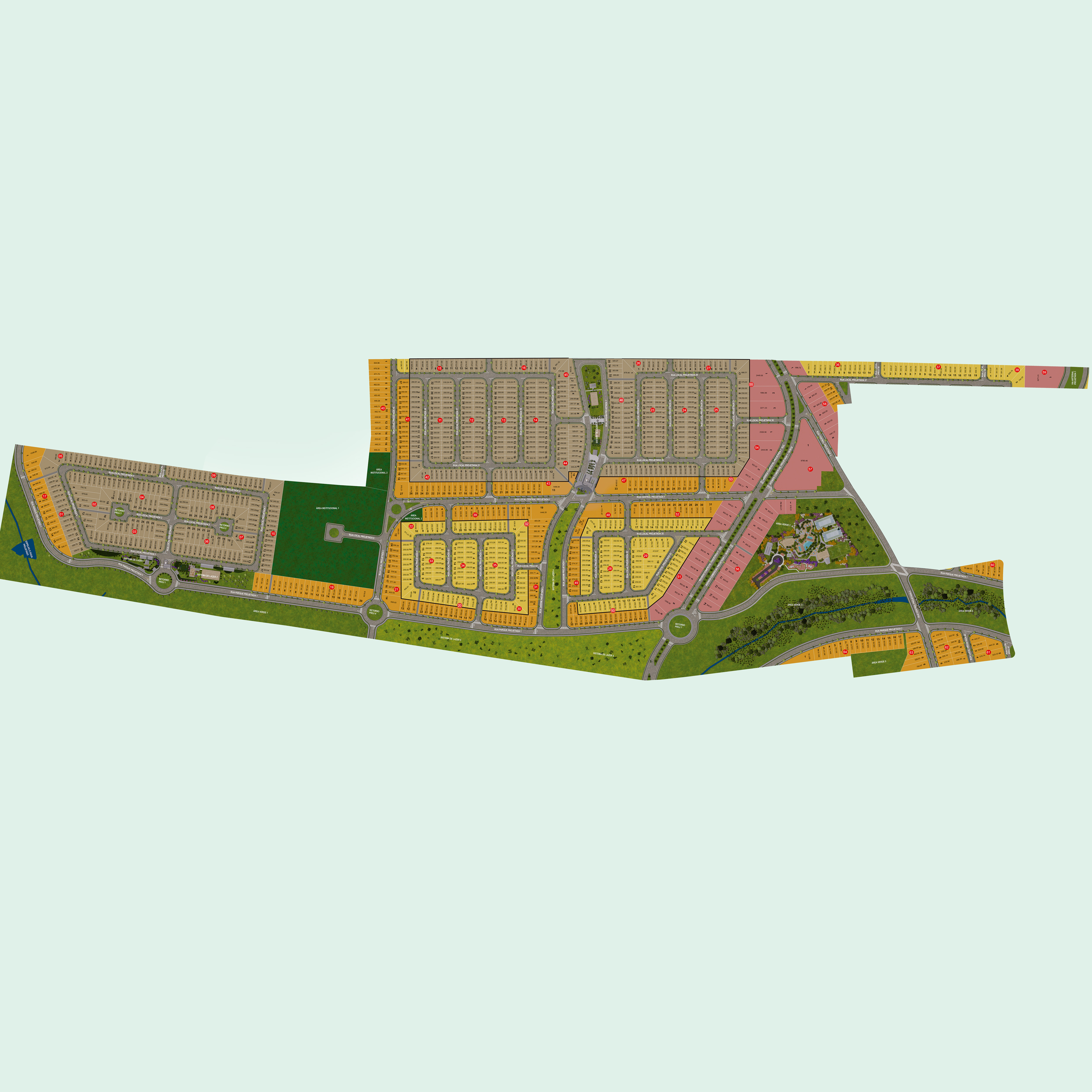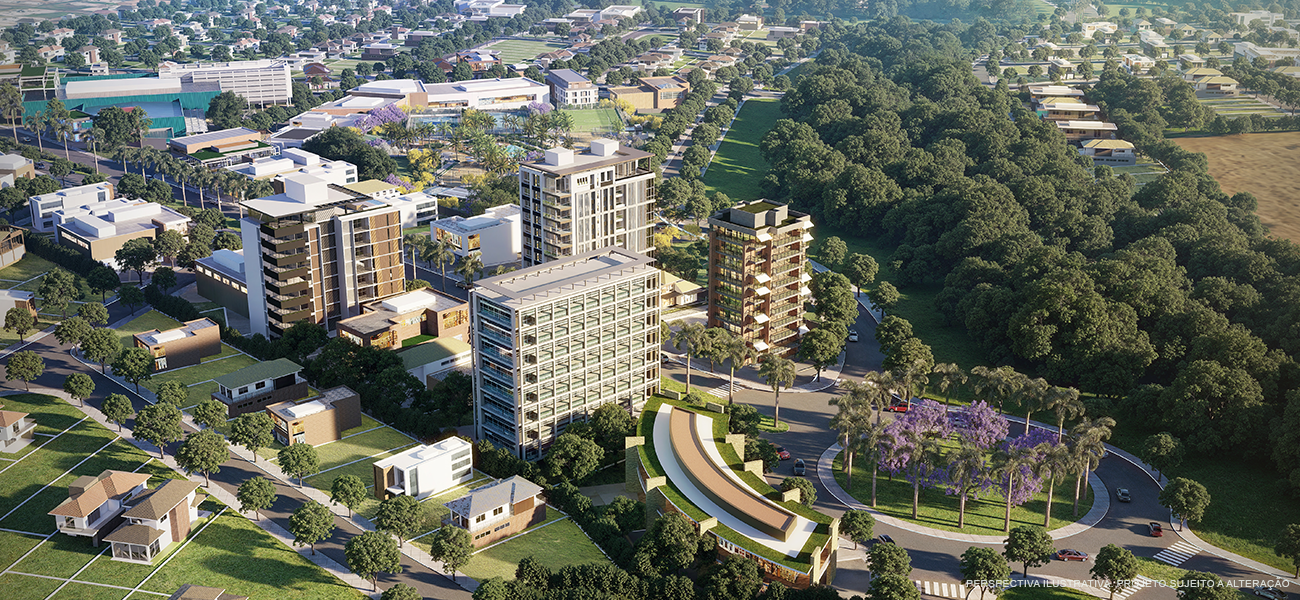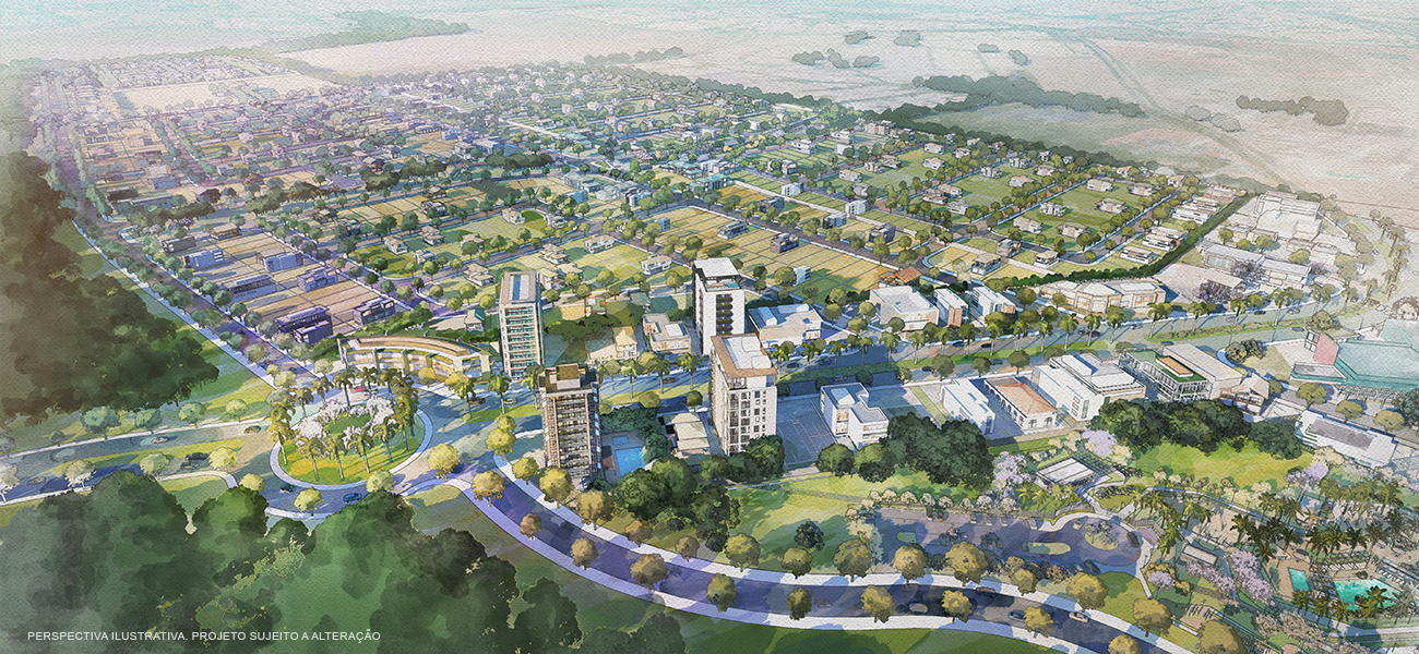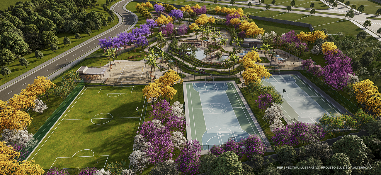 - Amplo espaço verde: com 122.000 m² de área preservada em um total de 852.000 m²;