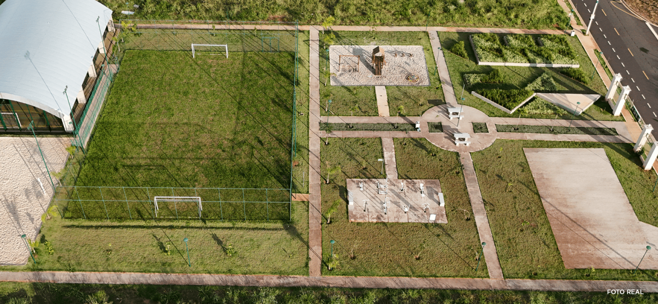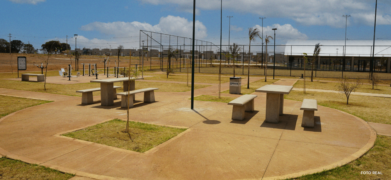 O empreendimento integra o projeto de bairro aberto com lazer de parque, contando com mais de 124.000 m² de área verde e aproximadamente 13.000 m² de área de lazer, que contempla espaços como: Jardim EMAIS com jardineiras e bancos, Praça EMAIS com espaço aberto para recreação, academia ao ar livre, playground, mini campo de futebol, quadra poliesportiva coberta, duas quadras de areia e pista de cooper interligando todo o empreendimento.