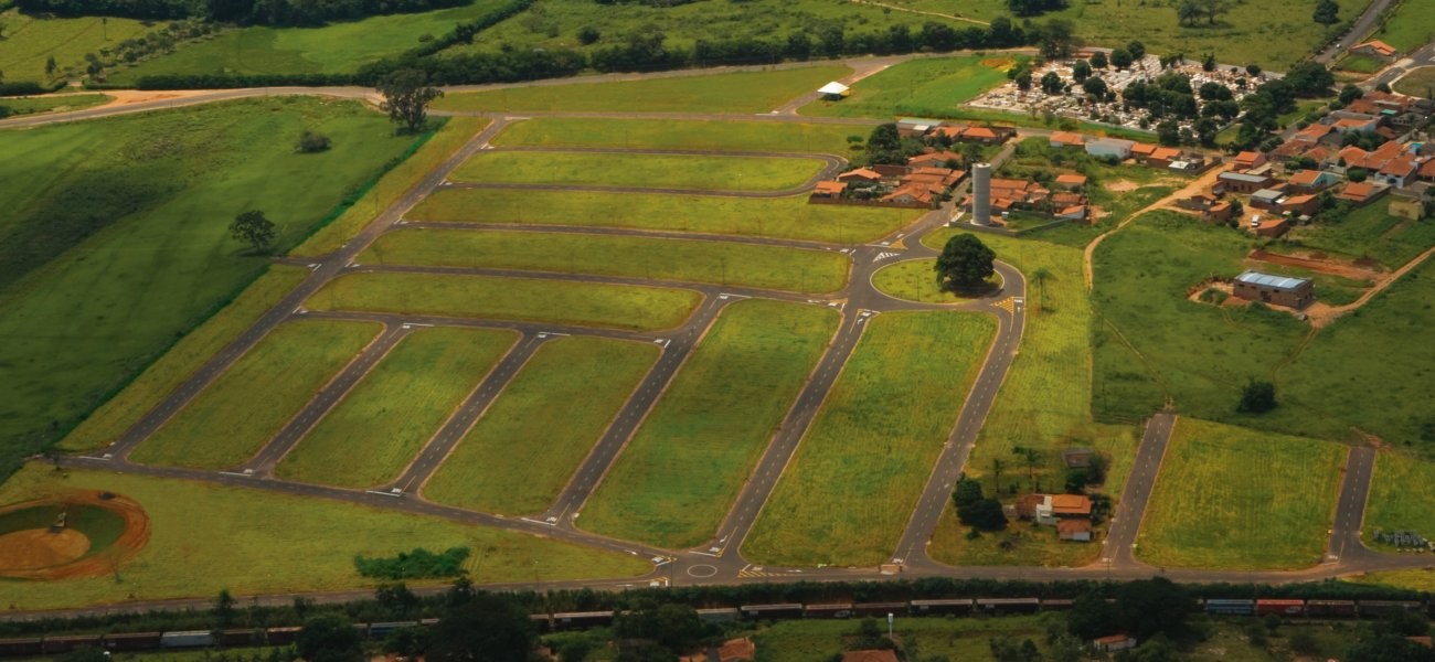 São terrenos residenciais e comerciais com metragem a partir de 200m², infraestrutura completa, áreas verdes e área institucional.